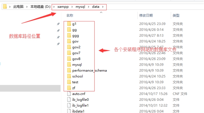 3、mysql数据库的位置:D:\xampp\mysql\data
