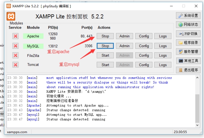 如果要安装国微CMS系统,程序代码直接放在 :D:\xampp\htdocs