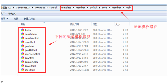 里面包括了登陆框路径的位置,下面是很多登陆框样式的汇总,你自己新增的登录框样式,可以放此处,也可以调用现在已经有的。