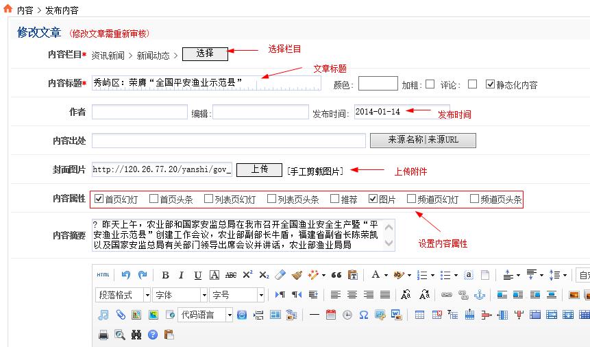 发布和文字内容管理:最为常见,但是一般都是前台操作为主。