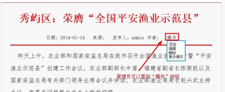 A:快捷操作按钮:管理员打开内容,均可看到操作按钮