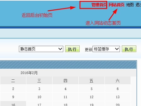 管理首页:点击即可进入后台管理的初始页;此按钮非常频繁的使用。