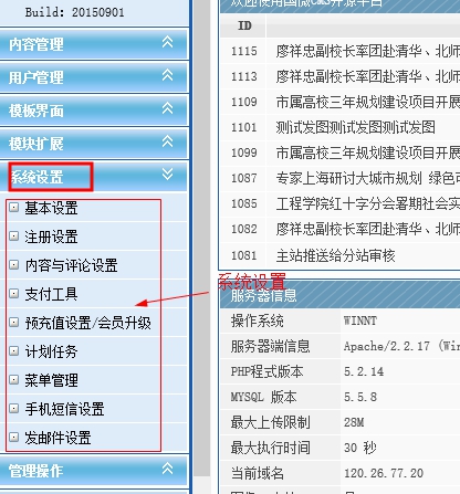 内容统计:对系统进行统计,需要手工点击下,才能生成最新统计。