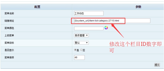 一般是网站内容的地址,所以只需将那个数字ID 改为栏目的ID即可:
