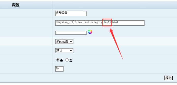 修改此正确的ID,查看下栏目列表,查看通知公告的ID,并填入之: