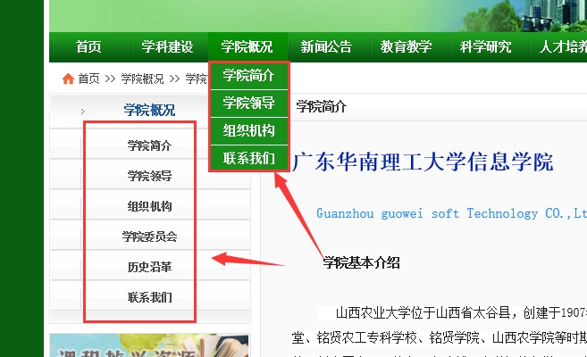 需要将菜单上的链接和栏目对应。点击菜单,就能显示栏目。